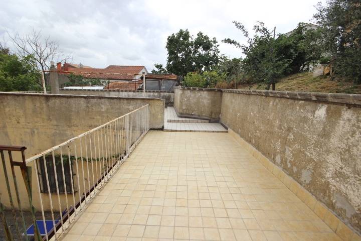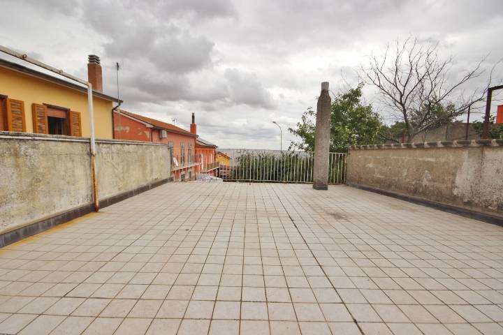 SCAMPITELLA- In zona periferica, non molto distante dal centro del paese e dai servizi principali, soluzione indipendente con terrazzo e cortile. Su due livelli, è composta al piano terra da cucina con camino, zona pranzo, salone, bagno e sottoscala; al primo piano tre camere da letto con uscita su terrazzo panoramico di circa 60 mq e bagno. Adiacente l’abitazione cantina e garage. Cortile antistante.