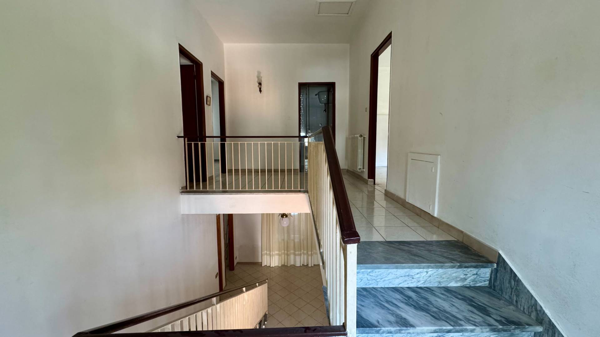 Il piano primo è dedicato alla zona notte, con tre camere da letto, tutte dotate di balcone, che garantiscono luminosità.Completa il piano un secondo bagno.
