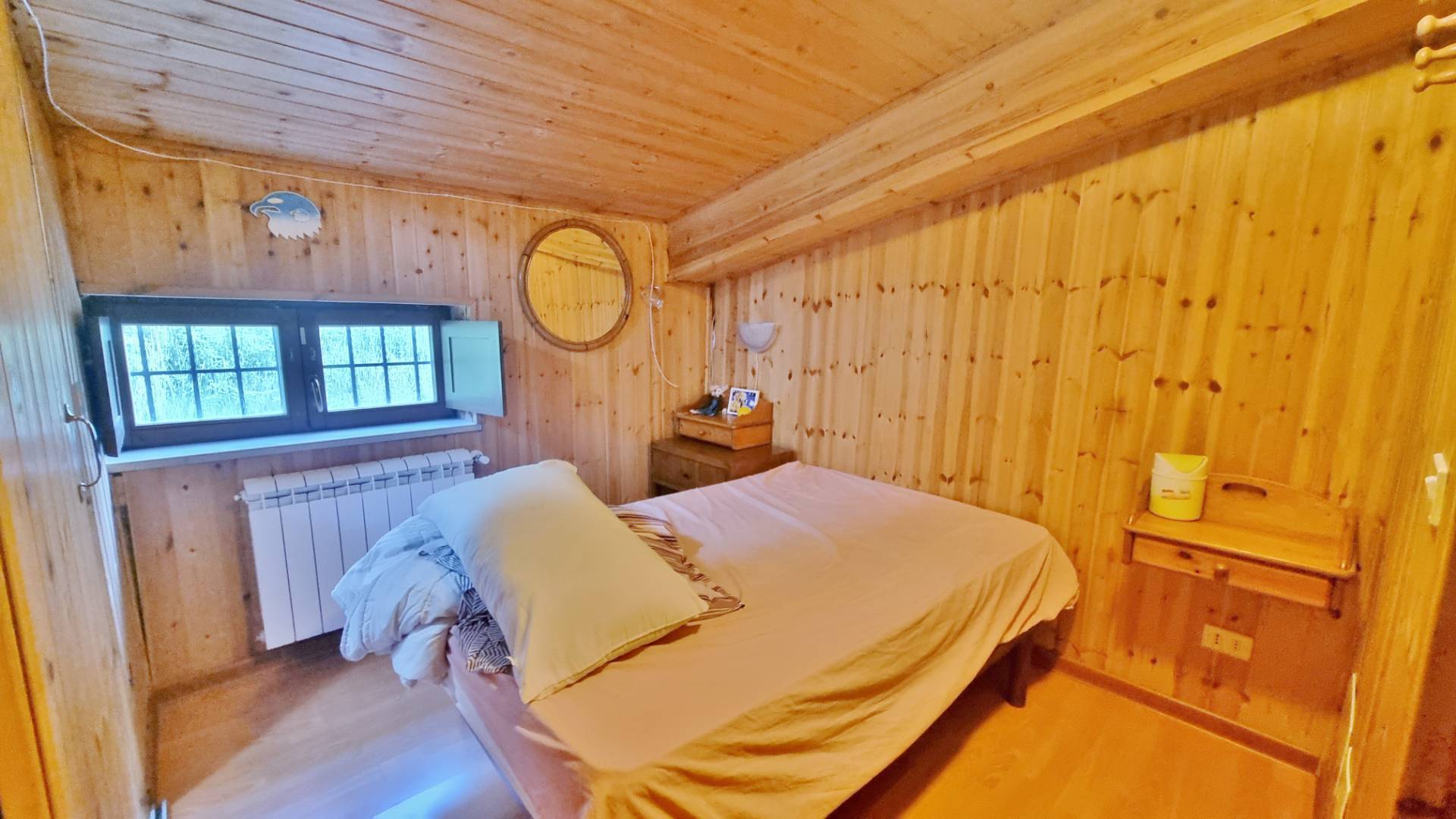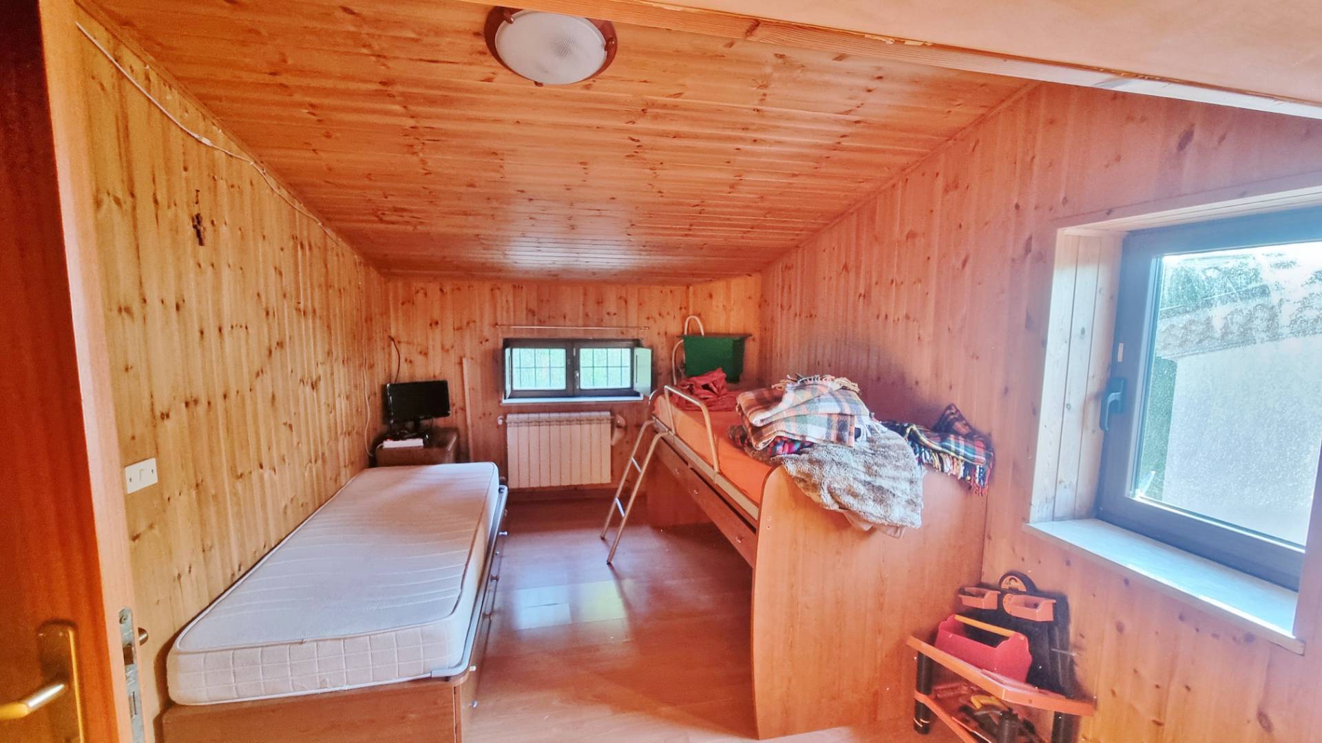 Al piano primo si accede da scala interna dove troviamo due camere da letto, disimpegno e bagno; dalla camera matrimoniale si va al terrazzo esterno di circa 50 mq. Al piano secondo è stata ricavata una mansarda rifinita in legno, divisa in due camere con bagno e vari ripostigli utilizzando al meglio lo spazio a disposizione. L’abitazione è in buone condizioni, necessita solo di piccole rifiniture mancanti e di una tinteggiata