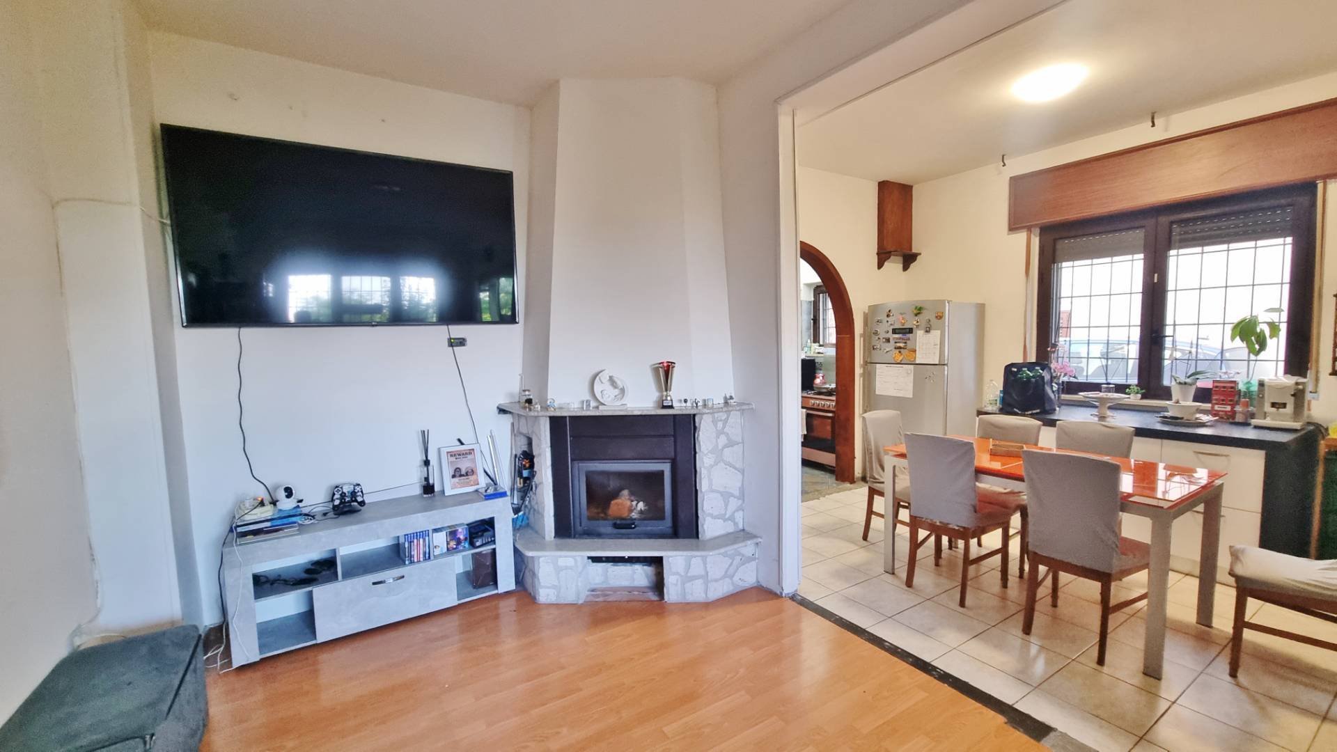 Composta da ingresso al piano terra da cui si accede nel salone con camino, zona pranzo, angolo cottura, ripostiglio, bagno di servizio.